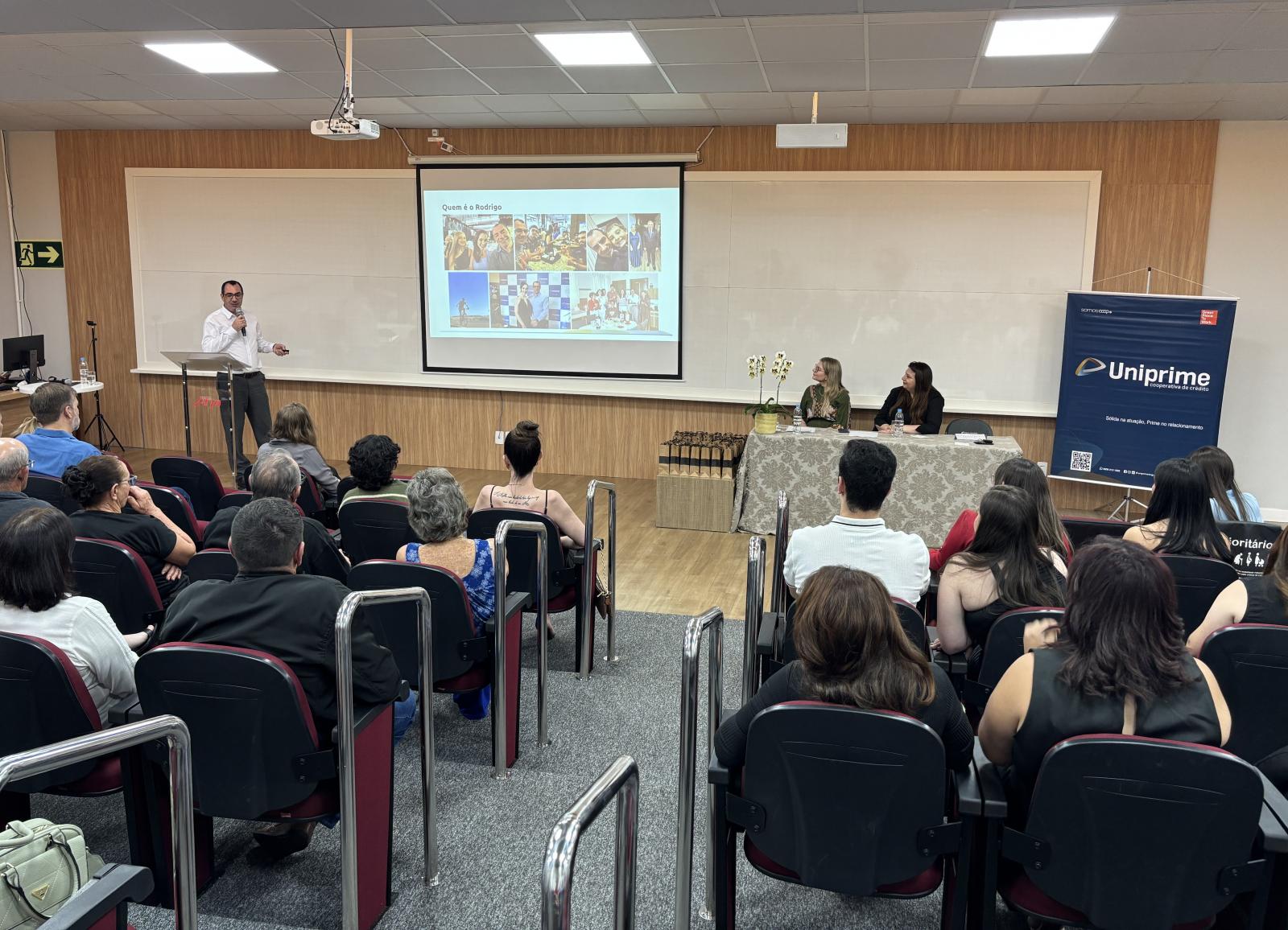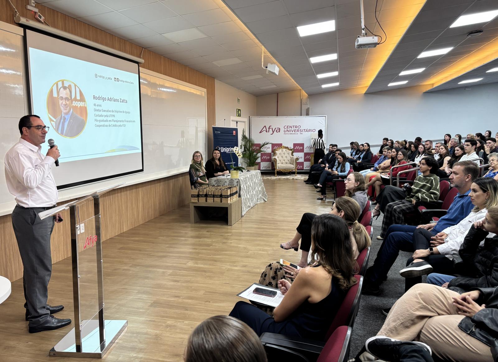 A cerimônia também contou com a participação do diretor executivo da Uniprime do Iguaçu, Rodrigo Adriano Zatta, que ministrou uma palestra aos calouros. Formado em Ciências Contábeis, Zatta compartilhou sua trajetória profissional, iniciada como estagiário na cooperativa, passando por diferentes áreas até chegar ao cargo atual.
